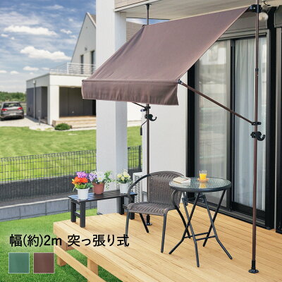 物干し竿 前幕付きオーニング 200cm | 2m 雨よけ つっぱり ベランダ シェード 日よけシート サンシェード 庭 日除け 洗濯干し 日よけ 日除けシェード 屋外 日除けスクリーン 雨除け オーニングテント 竿付 日よけシェード ガーデンファニチャー ものほし 日差しよけ uvカット