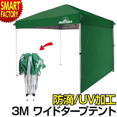 【2/23までポイント2倍】 タープテント 3m スチール テント タープ 300 UVカット 防滴 日よけ 日よけシート付 ワイド 大型 ファミリー テント アウトドア キャンプ バーベキュー イベント UV 大人数 送料無料 ☆