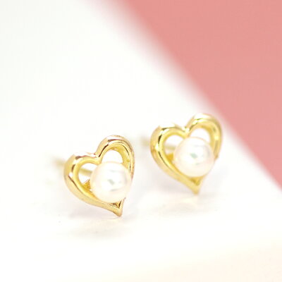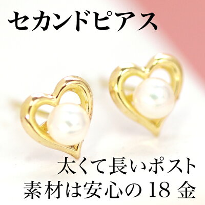 【あす楽対応】セカンドピアス レディース 18K 軸太0.8mm 長さ12mm ゴールド・ラブレッサ 淡水パール 真珠 オープンハートモチーフ 可愛いピアス 18金 K18 スタッドピアス 華奢 シンプル ポストが太い 安心 ノンアレルギー対応 福耳 おすすめ ブランド 宝石