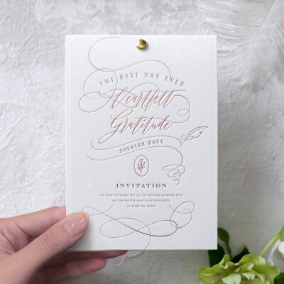 【豊富なラインナップ】招待状 席次表 座席表 席順表 席札 名前札 タグ ネームカード 手作りキット かざり紙 イニシャルスタンプ 【こんなシーンで】ウェディング ブライダル ペーパーアイテム 結婚式 披露宴 二次会 1.5次会 会費婚 パーティー 謝恩会 クラス会 同窓会 ゴルフコンペ イベント 【人気のワード】高級感 おしゃれ カジュアル 無料テンプレート オリジナルSourire doux -スリール ドゥ フロマージュ- 招待状【10名様分】商品番号:pa1119 スリール ドゥ フロマージュ 優しく美しいベロア調の心地よい肌ざわりと、上質で品のあるカリグラフィーデザインにコッパーの箔を贅沢に施しました。