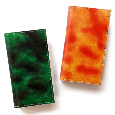 革質によって染色の度合いが変わるので、世界に一つだけの色、手帳型ケースが生まれます。