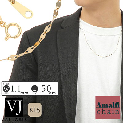 18金 ネックレス 18k メンズ イエローゴールド「Amalfi チェーン」1mm 幅 50cm [K18 イタリア アメリカ ハワイアン ペダル ペタル トレンド ジュエリー 角 小豆 あずき アマルフィー 男性 喜平 長角 アズキ 定番 10k 14k スクリュー 細い キヘイ ブランド 1.5mm ]