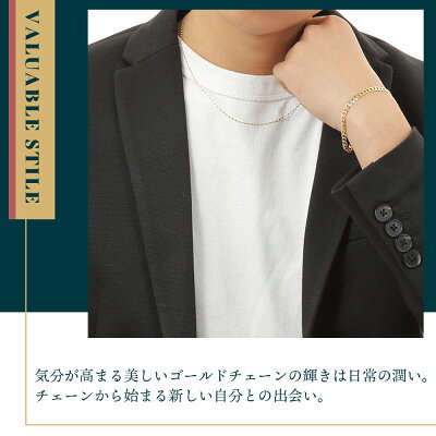 優雅に揺れ高貴に輝くゴールドチェーンはペンダントとも相性が良く、 チェーン単体でも顔周りに凛々しさと明るさを演出してくれます。