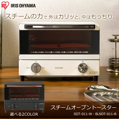 《ポイント5倍☆28日11時迄》トースター 小型 コンパクト 2枚 アイリスオーヤマ オーブントースター スチーム SOT-011-W 新生活 スチーム オーブン トースト 1000W タイマー パン ブレッド 朝食 家電 オシャレ おしゃれ ホワイト