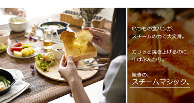 スチームでトーストをさらにおいしく!付属のスチーム用カップで、簡単に美味しく焼き上げることができます。
